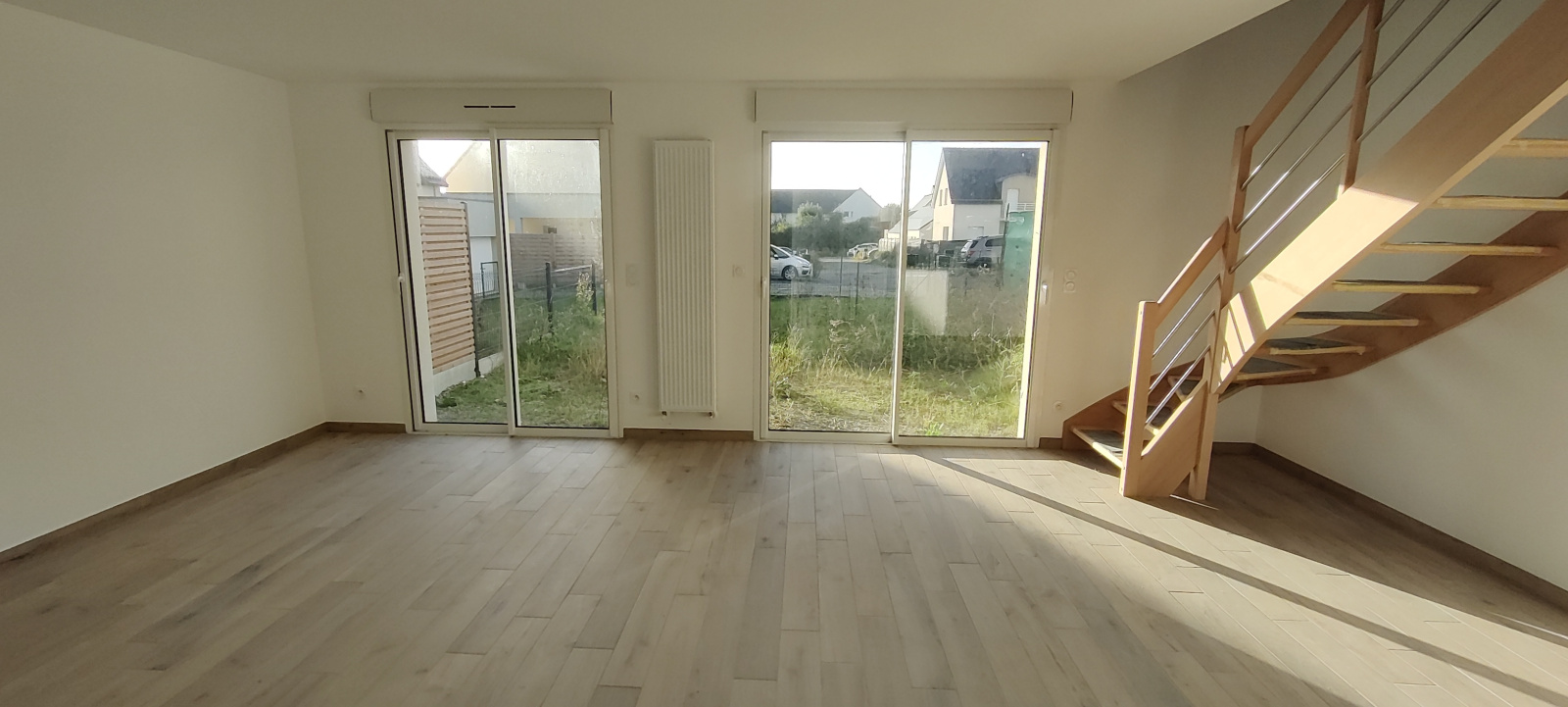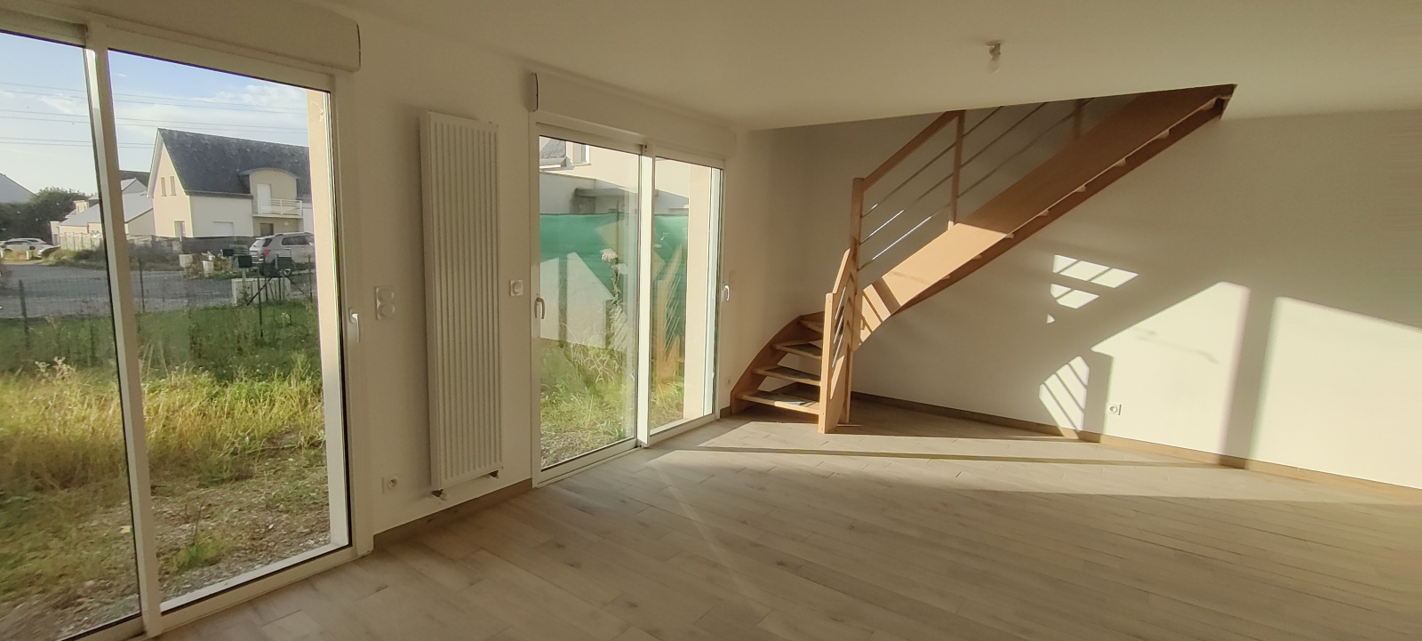 LAVAL, Maison Neuve prête à décorer comprenant au Rez de chaussée : Entrée, cuisine ouverte sur un séjour-salon, une arrière cuisine, un coin toilette ( WC+ Douche + lave mains). A l'étage : Palier desservant sur 3 chambres et une salle de bains. Le tout sur un terrain de 203m².
