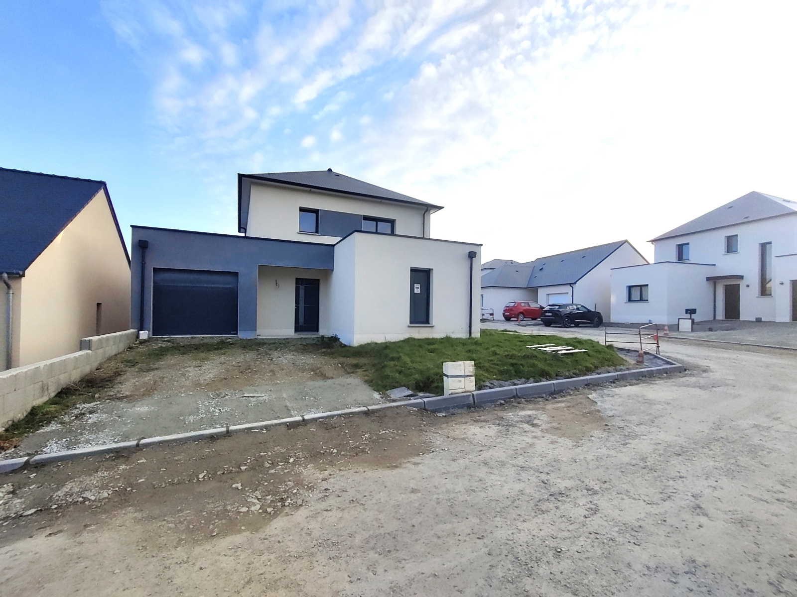 L'HUISSERIE, MAISON NEUVE, ( Frais de notaire réduit) , Sur un terrain de 337m² , maison de 135m² comprenant au rez de chaussée, Hall d'entrée, wc, accès pièce de vie ouverte sur une cuisine avec accès à la terrasse , Une suite parentale ( Chambre, coin dressing et salle d'eau) , Arrière cuisine et garage. A l'étage : Palier desservant 3 chambres et salle de bains, wc